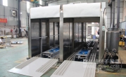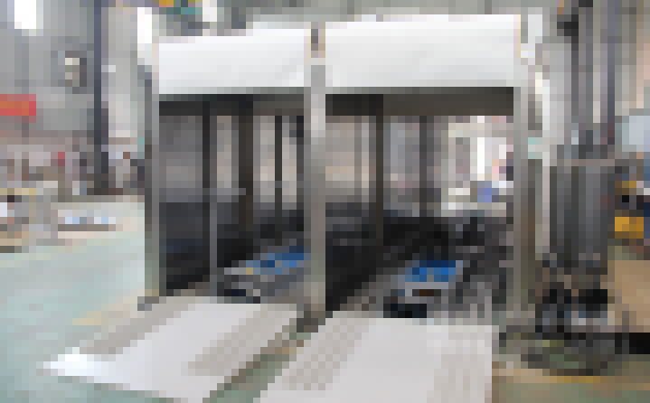 2、外形尺寸:寬4700*高2850*深13900mm,箱體內(nèi)可同時(shí)平排進(jìn)三臺(tái)推車(chē),烘烤時(shí)間可獨(dú)立設(shè)置(見(jiàn)附圖);上料區(qū)長(zhǎng)1500mm,設(shè)有上料斜坡,便于推車(chē)進(jìn)入緩沖區(qū);兩端緩沖區(qū)各長(zhǎng)1700mm,各設(shè)有升降平臺(tái),便于推車(chē)進(jìn)出烘烤,爐蓋上加裝0.75KW高溫抽風(fēng)風(fēng)機(jī);烘干區(qū)長(zhǎng)7620mm,烘干區(qū)前后裝有隔熱卷閘門(mén),加裝感應(yīng)器,底部設(shè)有傳送鏈條;下料區(qū)長(zhǎng)1500mm, 加裝斜坡 ,以便推車(chē)出料。